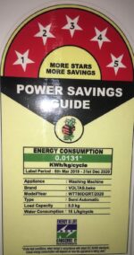 Capacity 8.0 kg (wash): Energy rating 5 Star