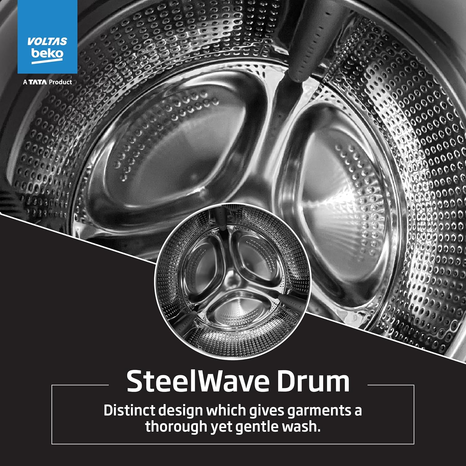 Voltas Beko, A Tata Product 8 Kg 5 Star Inverter Quick wash Fully-Automatic Front Loading Washing Machine (WFL8012B7JVBKA/AXV, Anthracite, In buit Heater/Hygiene steam)