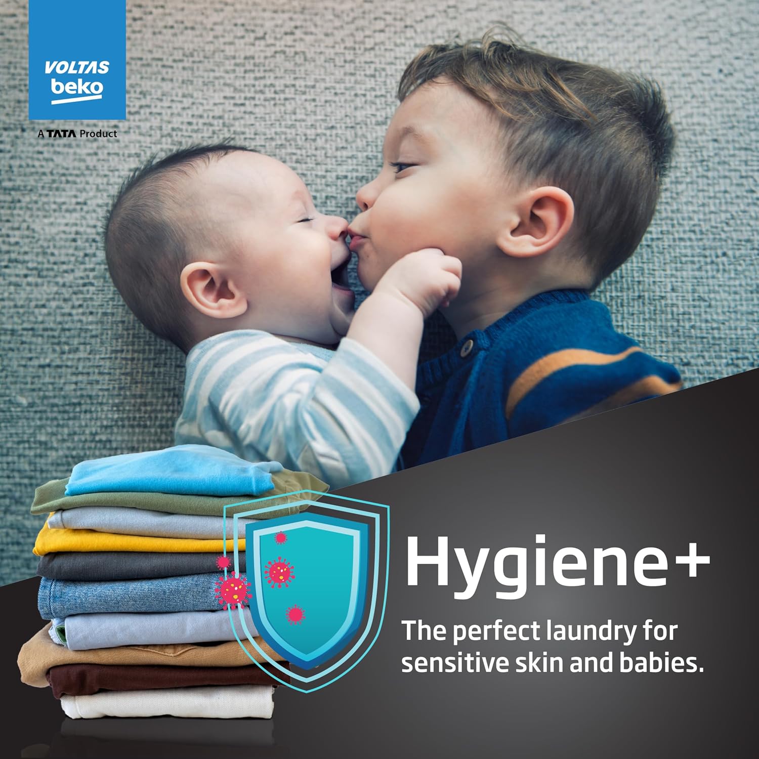 The hygiene+ feature provides an extra level of cleanliness by heating water to high temperatures, eliminating bacteria and allergens. This ensures a hygienic wash for your laundry, particularly beneficial for baby clothes or allergy-prone individuals. It offers peace of mind, knowing that your clothes are thoroughly sanitized with each wash.