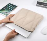 Unique Puffy Design: This laptop sleeve is built with special quilted puffer, stitching pattern design, cute and give your outfits a refreshing touch.The lining of ultrabook case is filled with soft, thick plush velvet for bump and shock absorption and protection of your laptop tablet from accidental scratches and hit,which provides excellent overall protection.