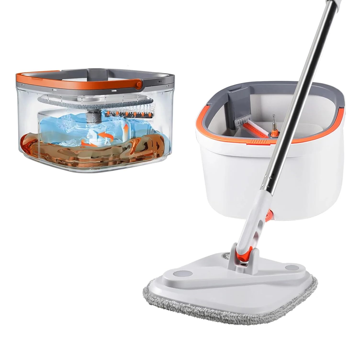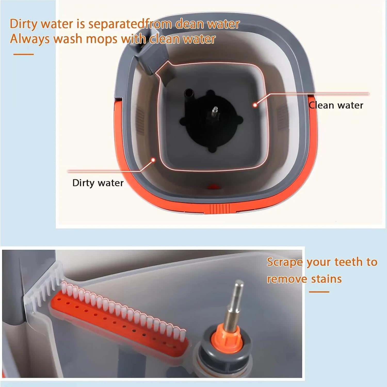 【Self Separation Sewage & Clean Water System】: spin mop and bucket set can separate the dirty water from the clean water making sure dirt and particulates don’t get reintroduced to the mop. And a spin cycle in the basket for wringing water out of the mop head to desired dampness. Your hands stay clean and dry with this self-washing and self-wringing floor cleaning system.