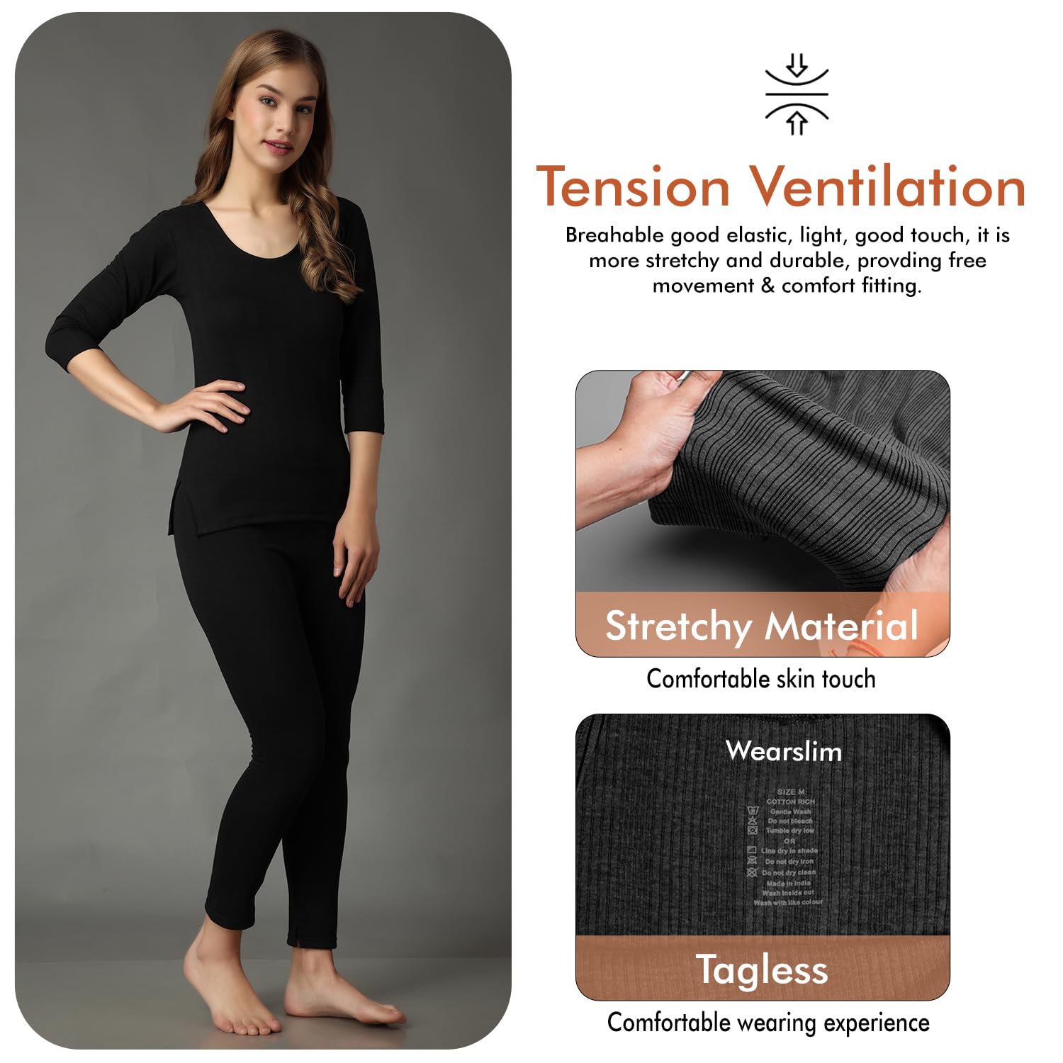 Wearslim ® Women’s Cotton Quilted Winter Lightweight Thermal Underwear for Women Long Johns Set with Fleece Lined Soft Warmer