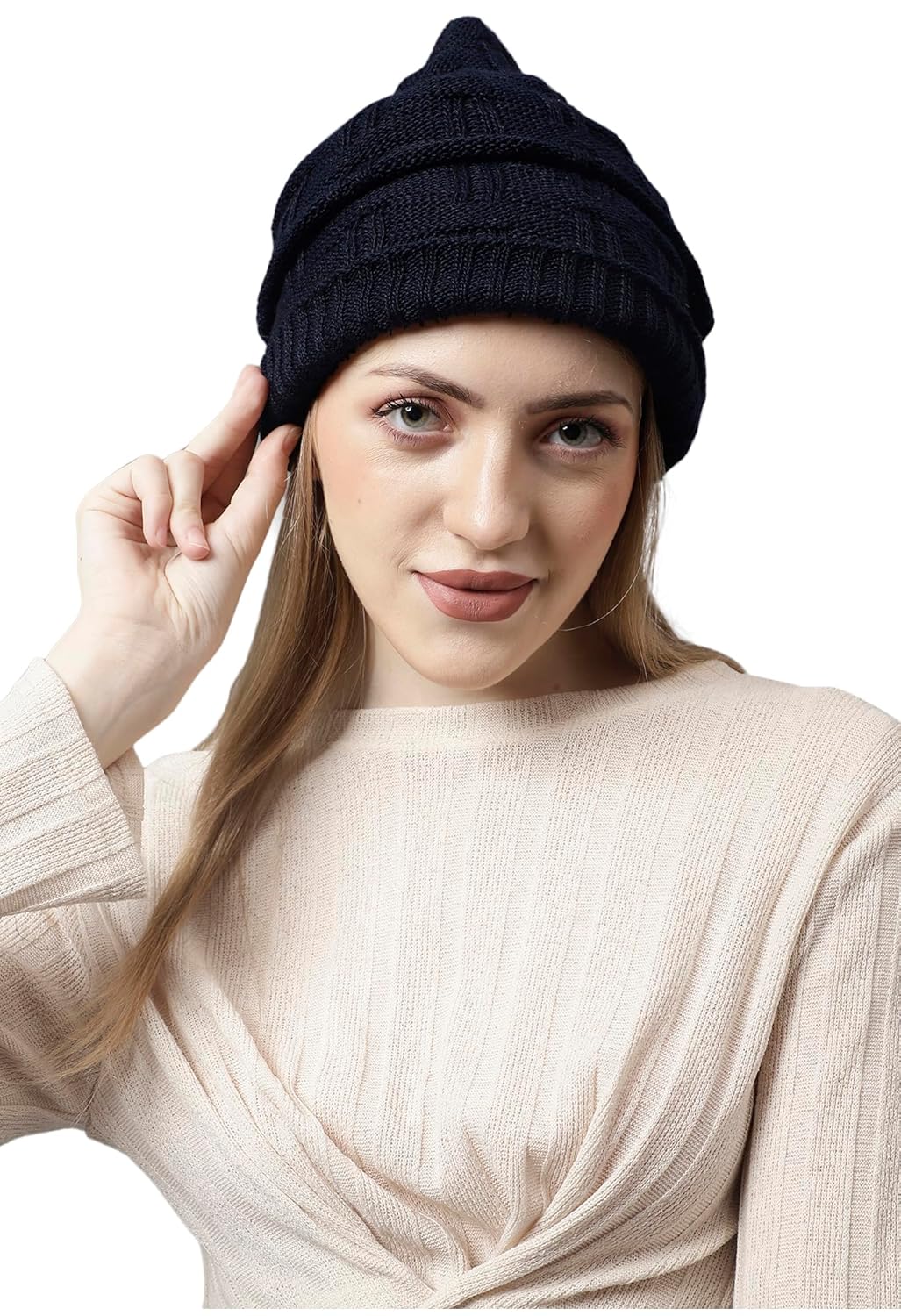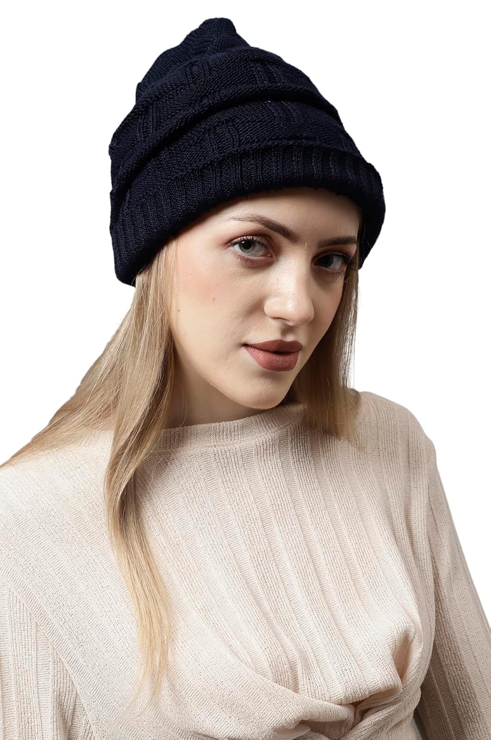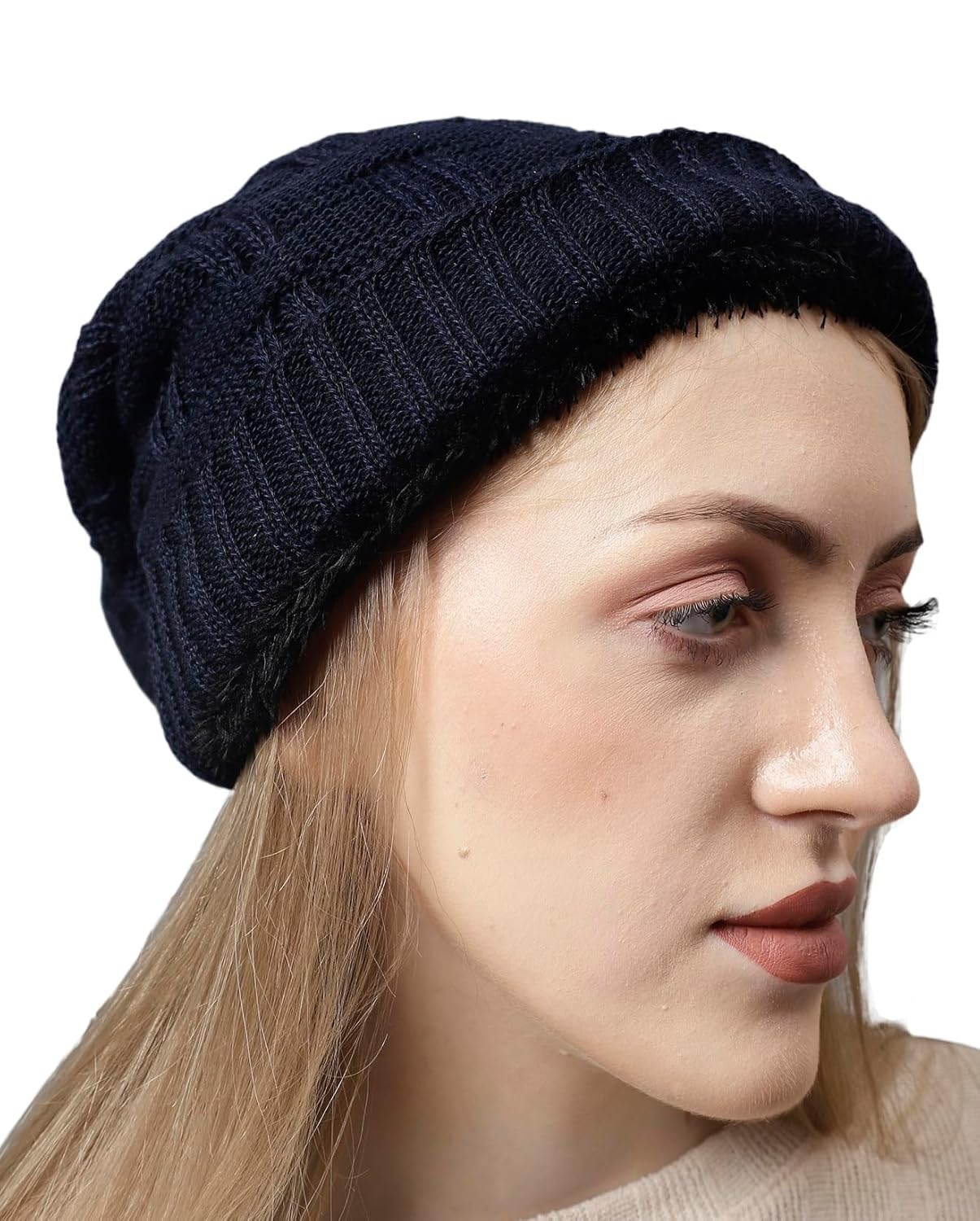 Weavers Villa Set of Snow Proof Inside Fur Acro Wool Unisex Beanie Cap Knit Hat Thick Fleece Lined Winter Cap and Gloves for Men & Women, Free Size