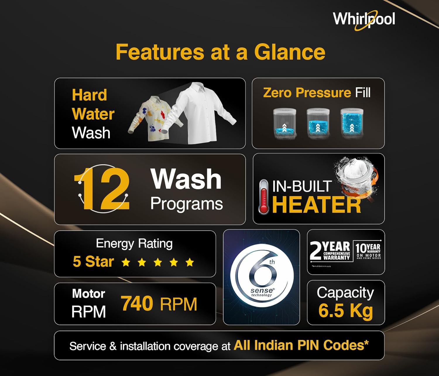Whirlpool Washing Machines come with 5 Star Energy rating for best in class water & energy efficiency.