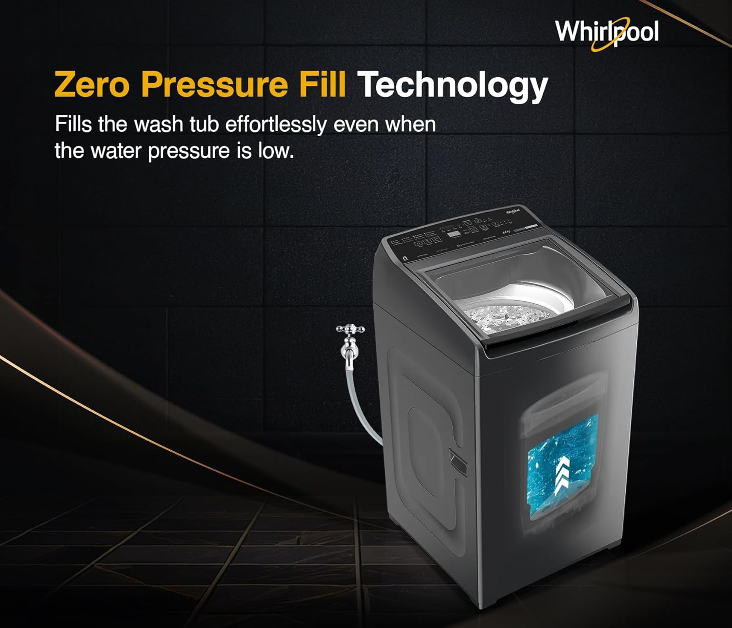 To resolve water pressure situations, Whirlpool presents ZPF Technology. Zero Pressure. Fill technology ensures that the wash tub gets filled 50% faster even if the water pressure is as low as 17mpa.