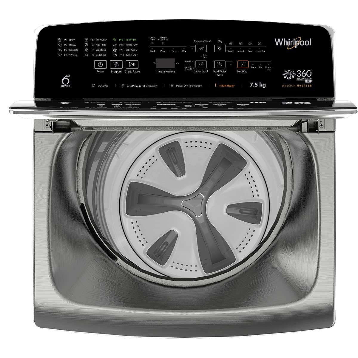 Whirlpool 7.5 kg 5 Star Inverter Fully-Automatic Top Loading Washing Machine with In-Built Heater, (360 Bloomwash PRO INV 7.5 Heater Cool Illusia)
