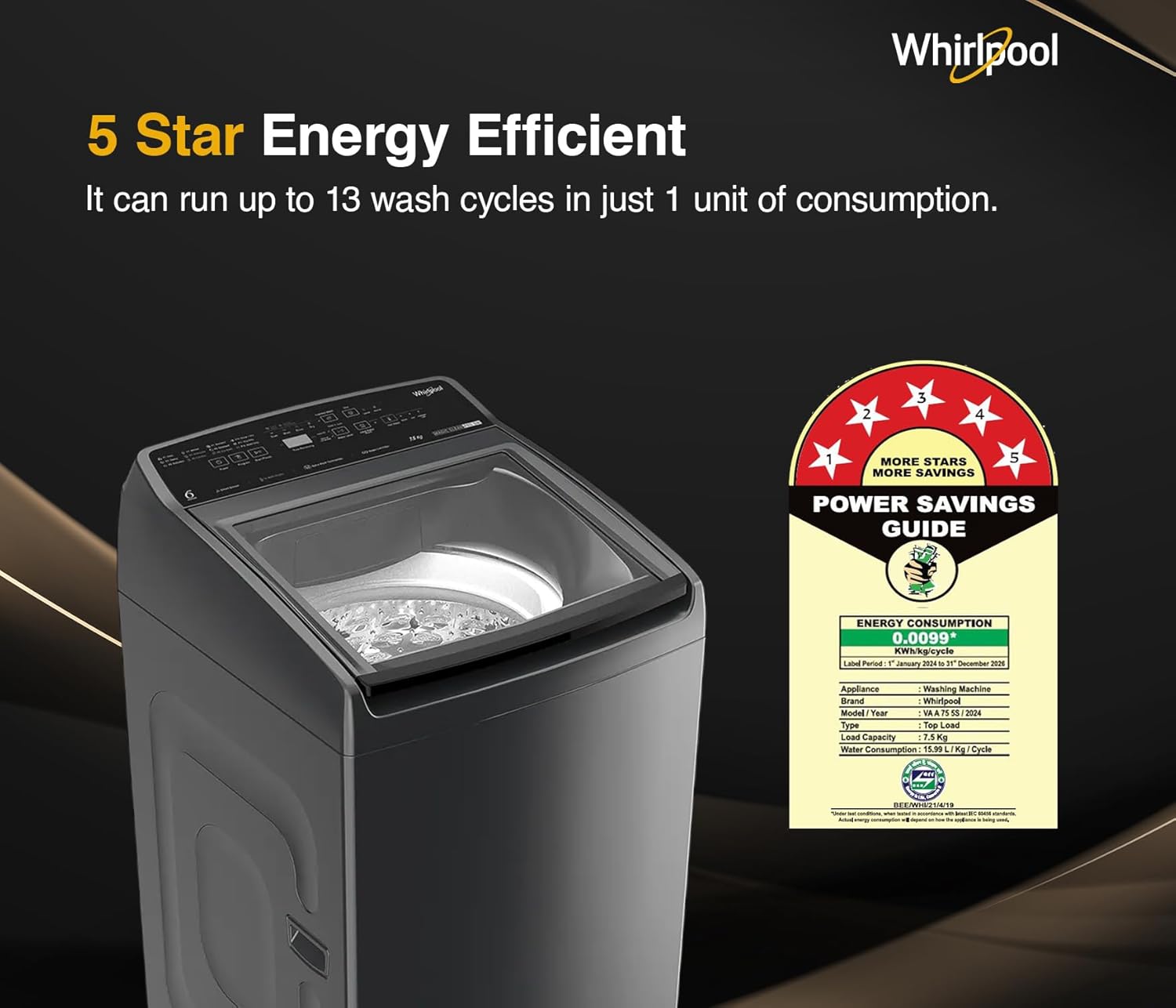 Whirlpool Washing Machines come with 5 Star Energy rating for best in class water & energy efficiency.