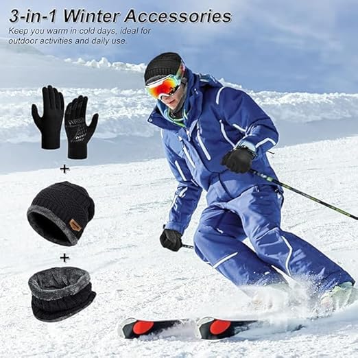 WILDSTICH Cap & Gloves for Men & Women | Soft Knitted Woollen Lightweight Warm Beanie Cap & Gloves | Set of Beanie Cap, Neck Warmer & Winter Gloves for Men & Women |