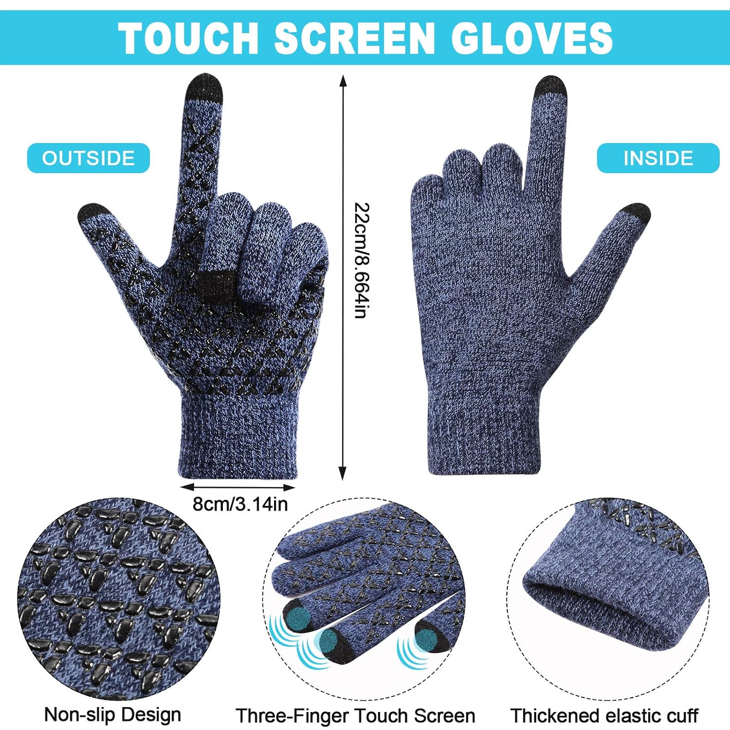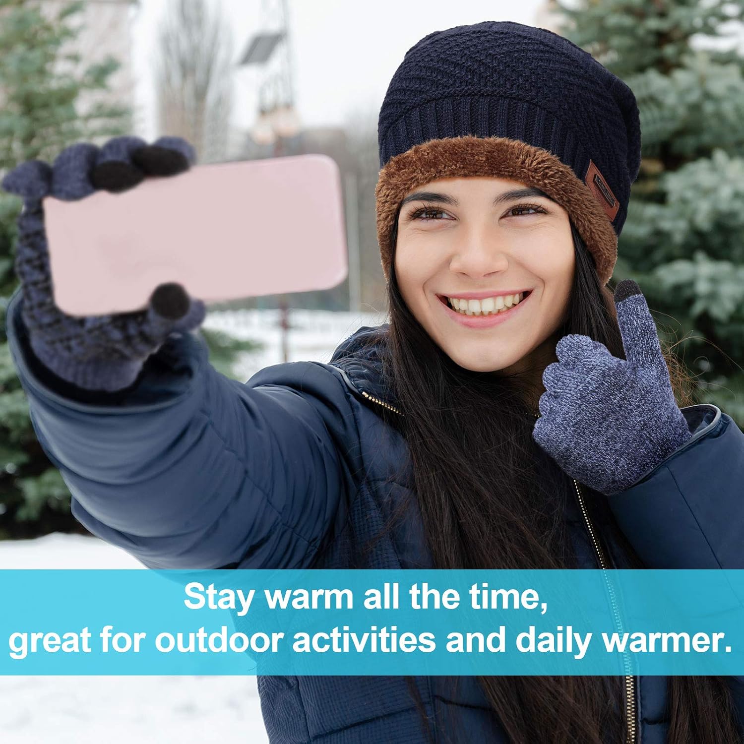 Winter Fleece Lined Beanie Hat Scarf Sock Touchscreen Gloves Set for Men Women