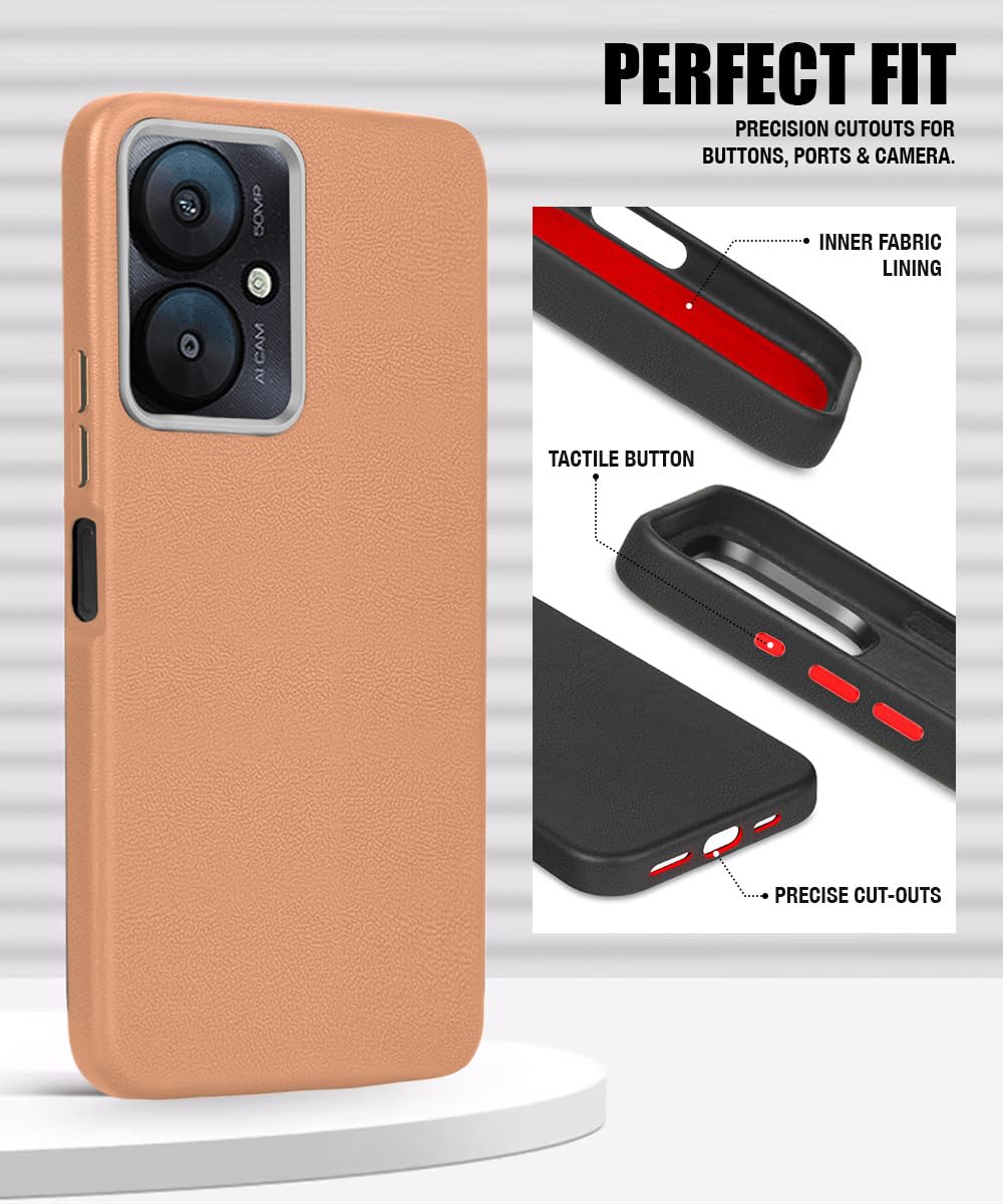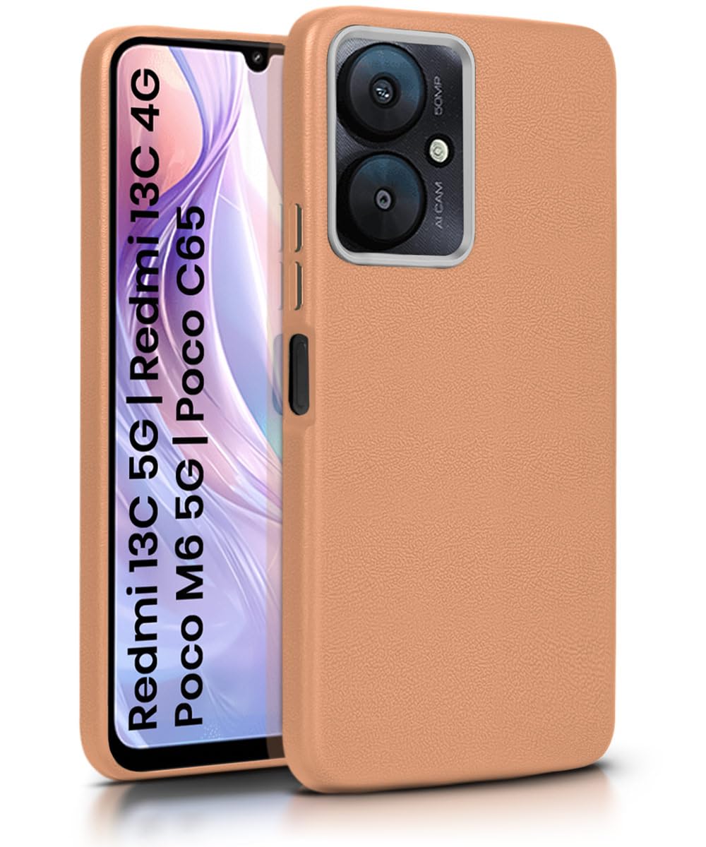 WOW IMAGINE Back Cover for Xiaomi Mi Redmi 13C 5G | Redmi 13C 4G | Poco M6 5G | Poco C65 | Ultra Slim Flexible | Inner Fabric | Metal Camera Ring & Lightweight Soft Silicone Mobile Case – Tan Brown
