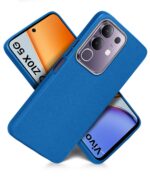 WOW IMAGINE Leather Fabric Soft TPU Back Cover for Vivo T4X 5G | iQOO Z10X 5G (Blue)