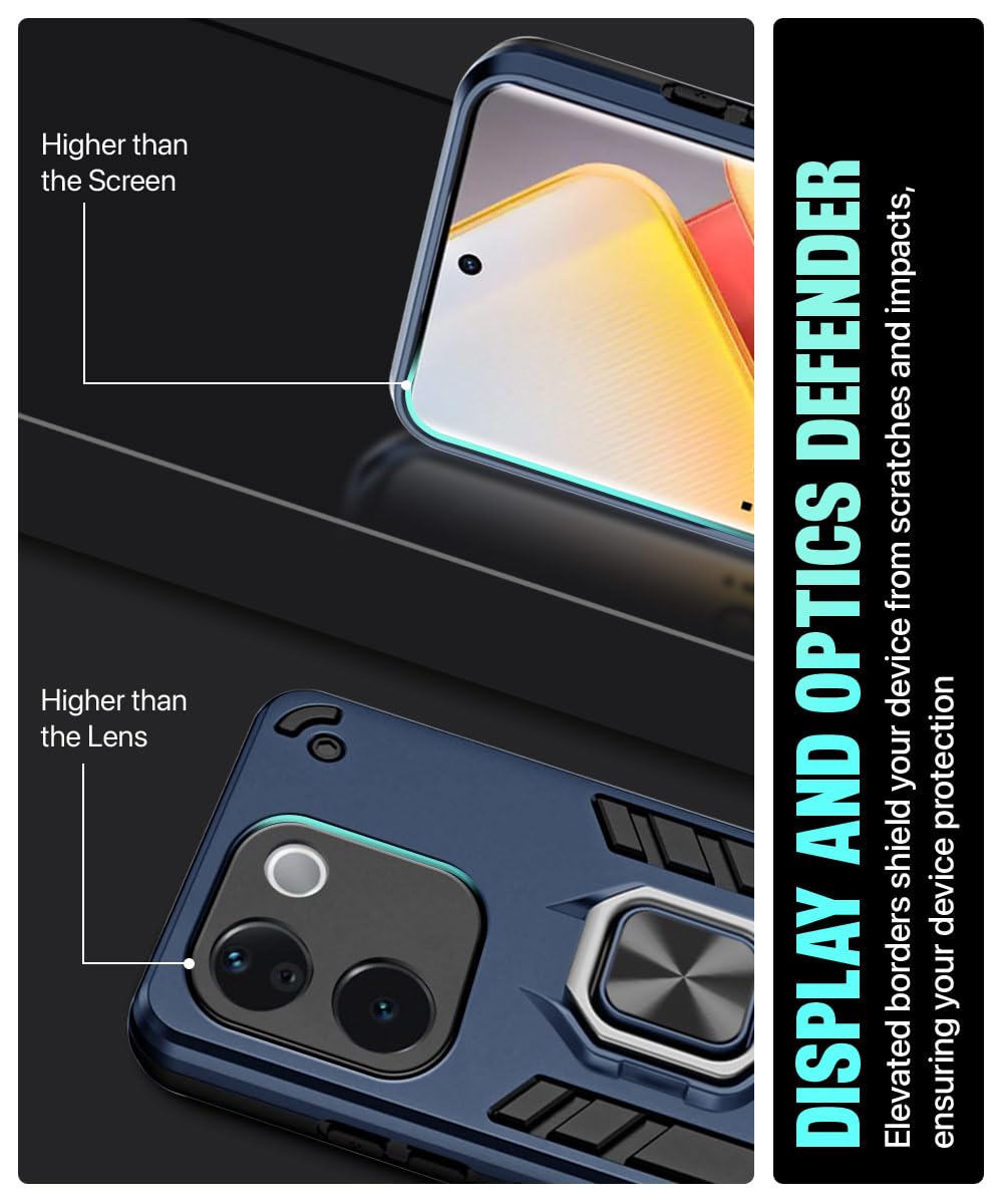 WOW IMAGINE Shock Proof Back Case Mobile Cover for iQOO Z9s Pro 5G | Vivo T3 Pro 5G | Back Cover Case (Tough Armor | Hybrid PC + TPU | Ring Holder & in-Built Kickstand | Blue)