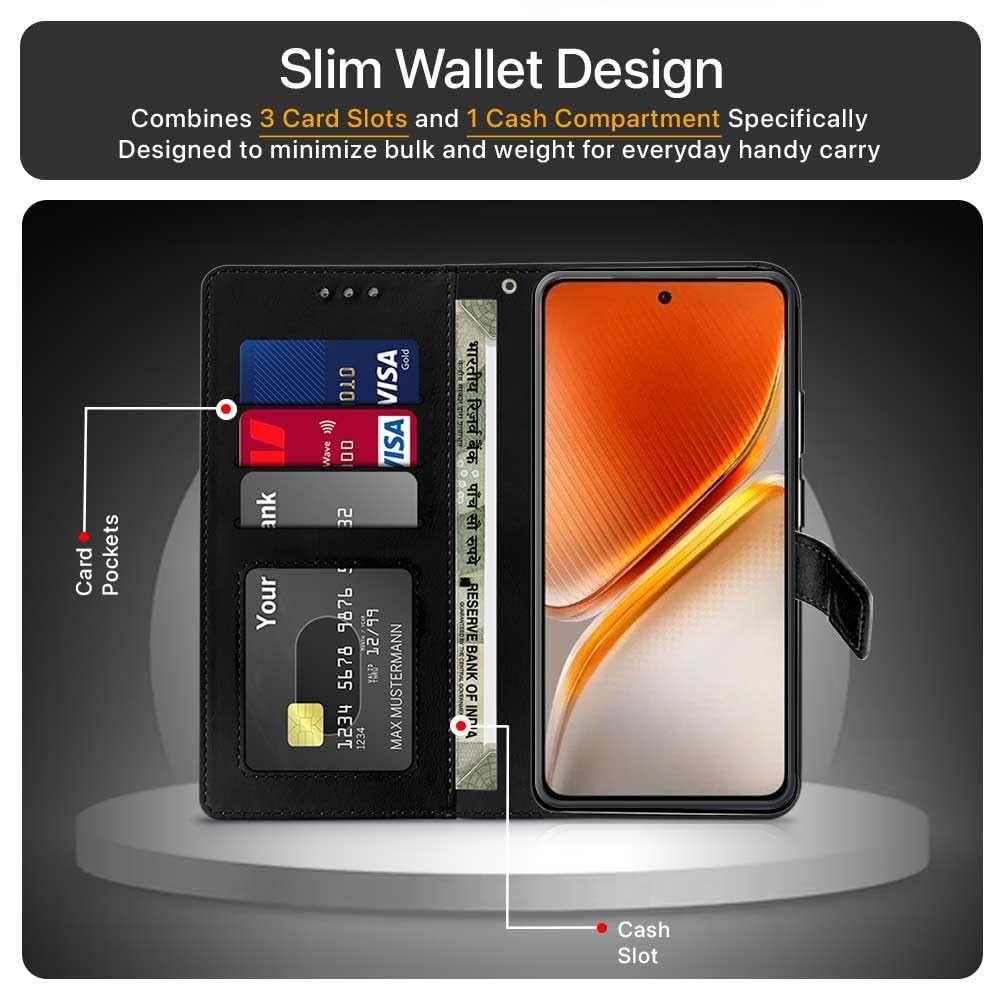 WOW IMAGINE Shock Proof Flip Cover Back Case Cover for iQOO Neo 10 5G (Flexible | Leather Finish | Card Pockets Wallet & Stand | Black)