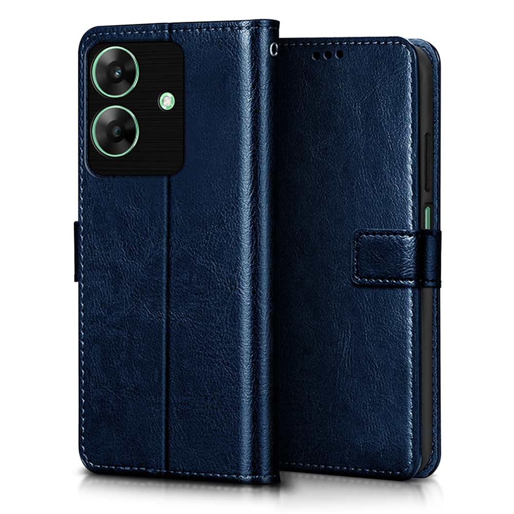 WOW IMAGINE Shock Proof Flip Cover Back Case Cover for Realme Narzo N61 | Realme C61 (Flexible | Leather Finish | Card Pockets Wallet & Stand | Blue)