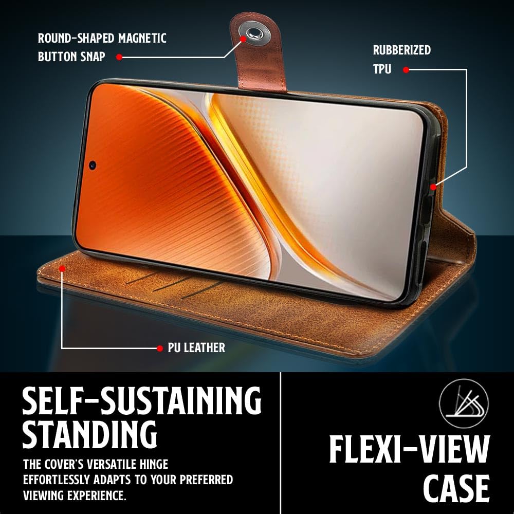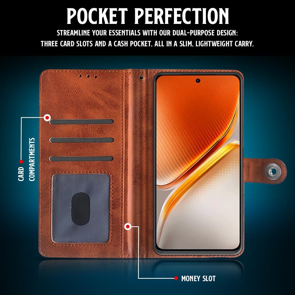 WOW IMAGINE Shock Proof Flip Cover Back Case for iQOO Neo 10 5G (Magnetic Button Flip Case | Wallet Pockets & Stand | Leather Finish | Alder Brown)