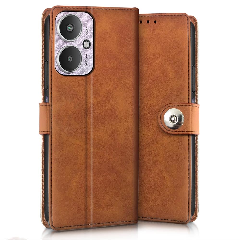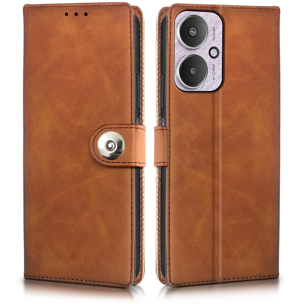WOW IMAGINE Shock Proof Flip Cover Back Case for Mi Redmi 13C 5G | Redmi 13C 4G | Poco M6 5G | Poco C65 (Designer Magnetic Button Flip Case | Wallet Pockets & Stand | Leather Finish | Alder Brown)