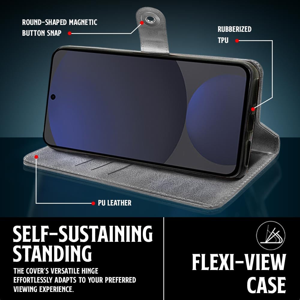 WOW IMAGINE Shock Proof Flip Cover Back Case for Samsung Galaxy S24 FE 5G (Magnetic Button Flip Case | Wallet Pockets & Stand | Leather Finish | Stone Grey)