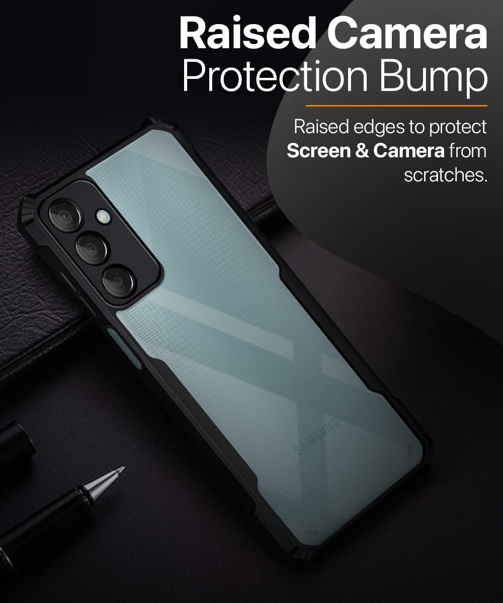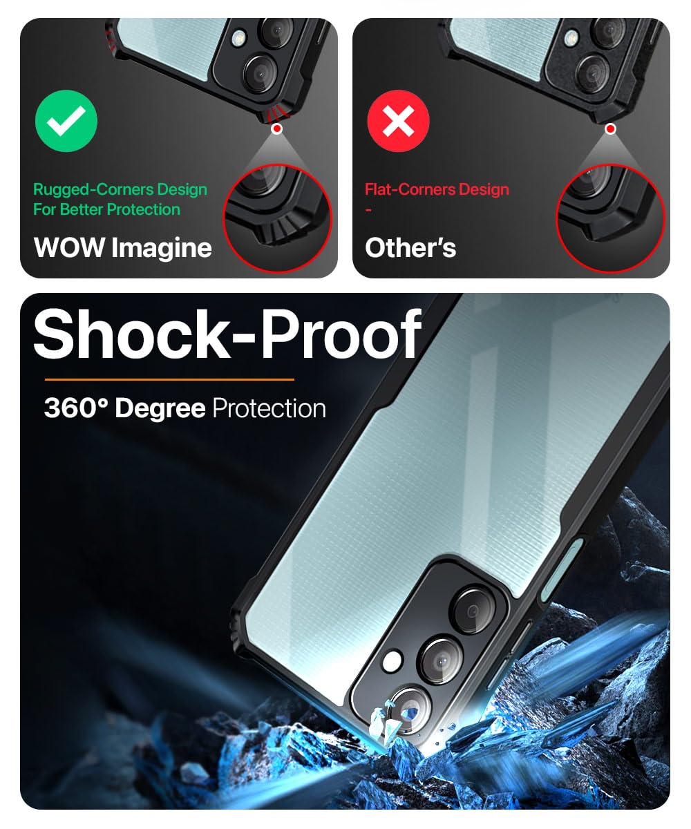 WOW IMAGINE ShockProof Clear Protective Back Case for Samsung Galaxy M15 5G Prime Edition | M15 5G | F15 5G – AirEDGE | 360 Degree Camera Protection | Transparent Hybrid Back Case Mobile Cover – Black