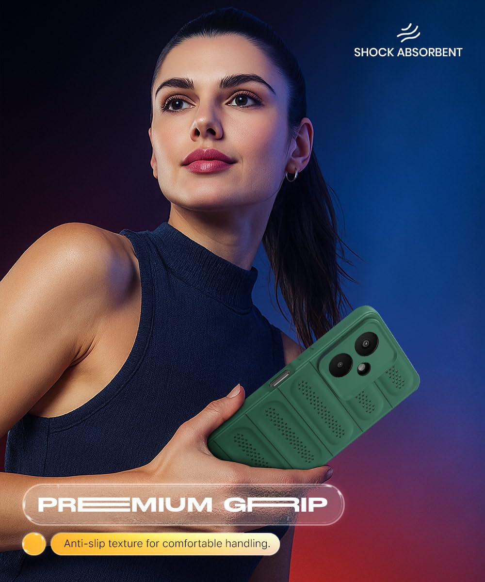 WOW IMAGINE Ultimate Silicone Back Cover Case for Mi Redmi 13C 5G | Redmi 13C 4G | Poco M6 5G | Poco C65 | Heat Dissipation Soft TPU | 360° Camera Protection | Breathable Cooling Holes – Forest Green