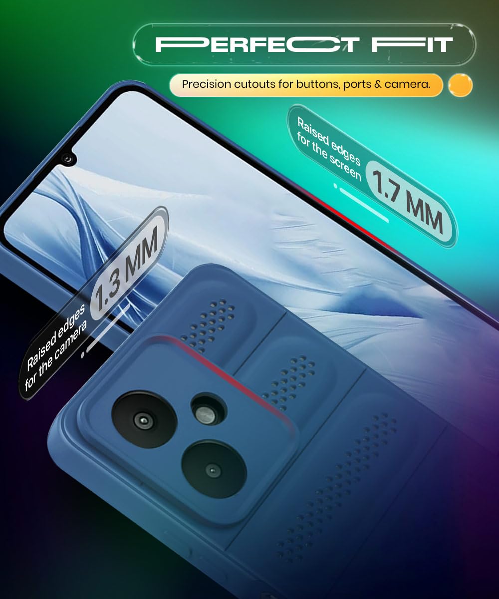 WOW IMAGINE Ultimate Silicone Back Cover Case for Mi Redmi 13C 5G | Redmi 13C 4G | Poco M6 5G | Poco C65 | Heat Dissipation Soft TPU | 360° Camera Protection | Breathable Cooling Holes – Deep Blue