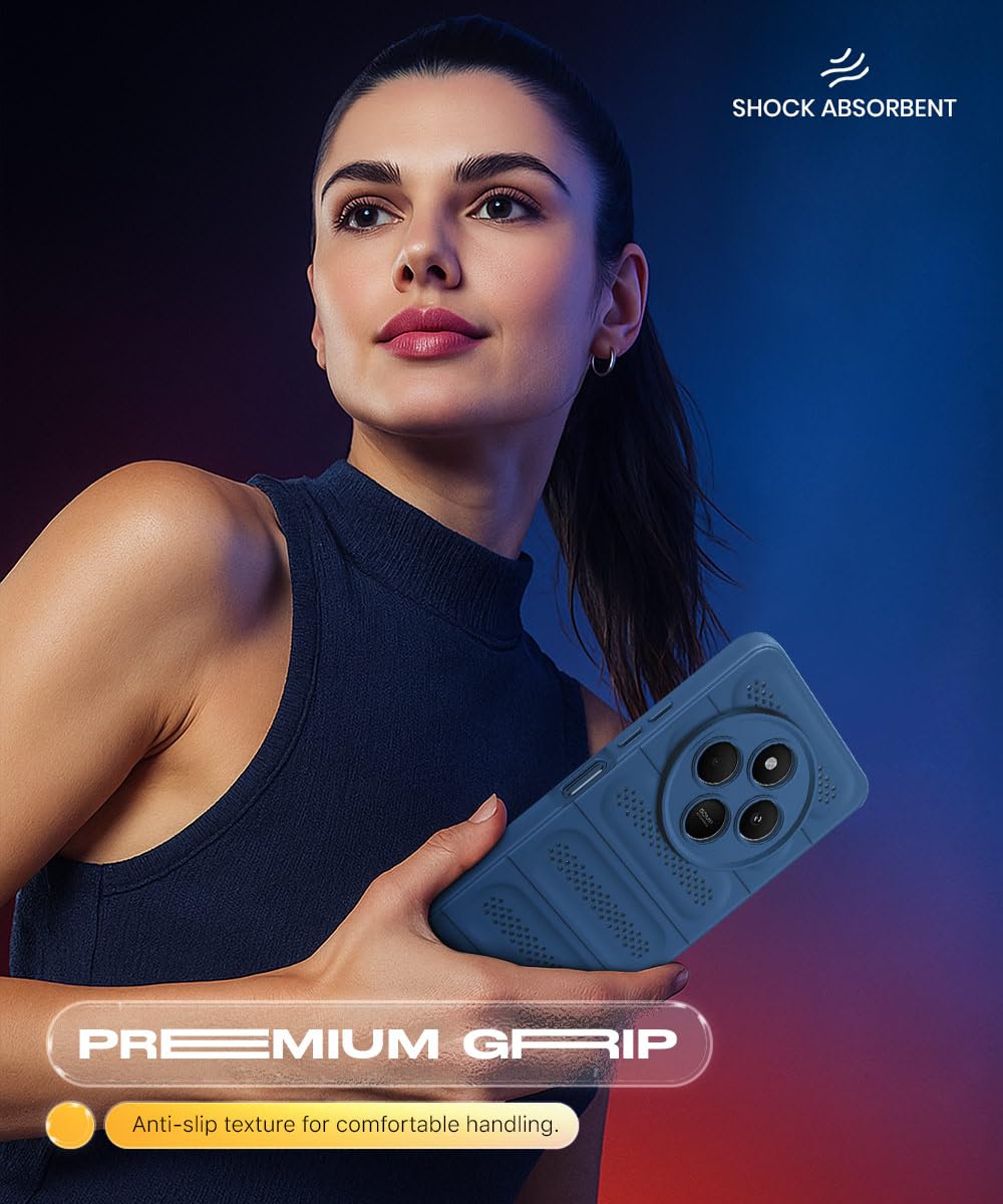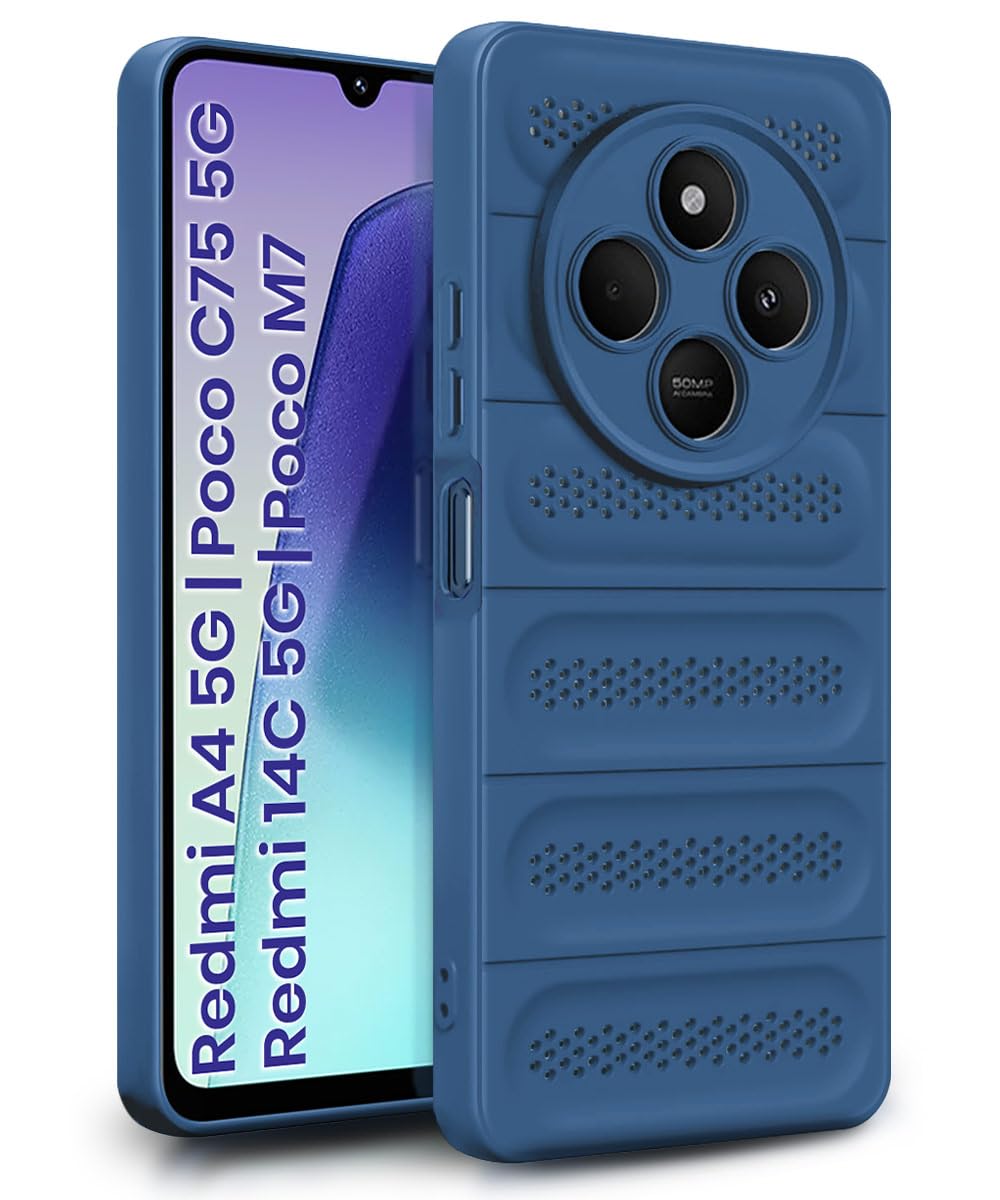 WOW IMAGINE Ultimate Silicone Back Cover Case for Redmi A4 5G | Poco C75 5G | 14C 5G | Poco M7 | Heat Dissipation Thin Soft TPU | 360° Camera Protection | Breathable Cooling Holes – Deep Blue
