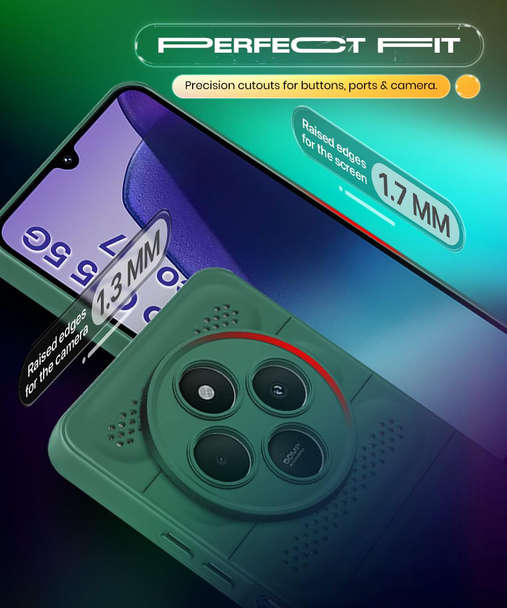 WOW IMAGINE Ultimate Silicone Back Cover Case for Redmi A4 5G | Poco C75 5G | 14C 5G | Poco M7 | Heat Dissipation Thin Soft TPU | 360° Camera Protection | Breathable Cooling Holes – Forest Green