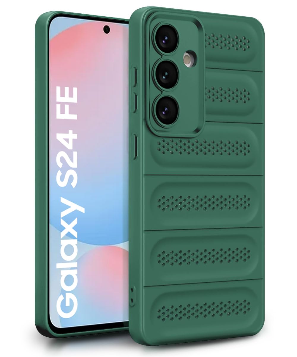 WOW IMAGINE Ultimate Silicone Back Cover Case for Samsung Galaxy S24 FE 5G | Heat Dissipation Thin Soft TPU | 360° Camera Protection | Breathable Cooling Holes – Forest Green