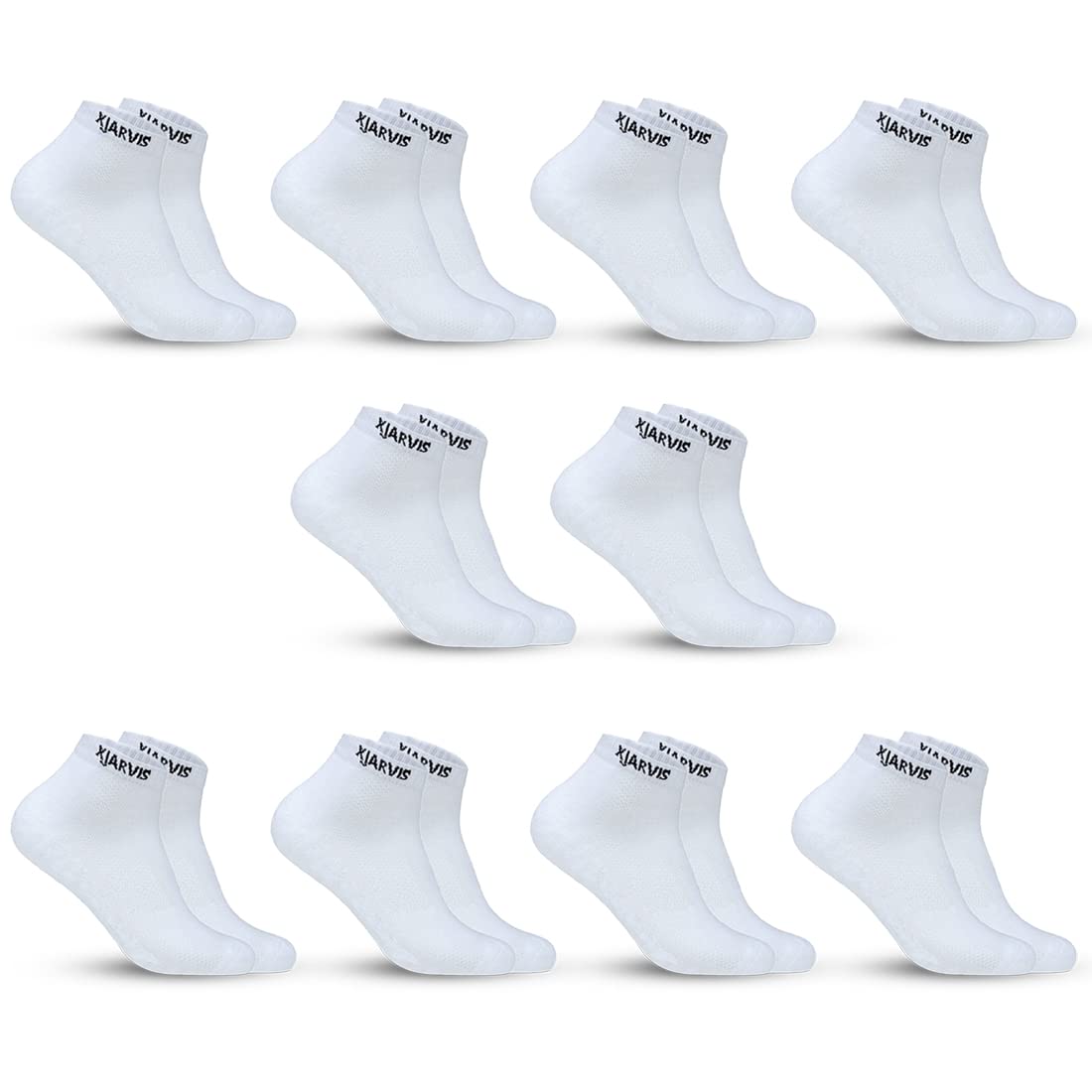 XJARVIS® Ankle Length Socks for Men & Women – Moisture-Wicking, Odor-Free, Breathable Cotton, Cushioned Half Terry Combo – Ideal for Sports, Gym & Formal Wear – Pack of 10 Pairs, White, Free Size