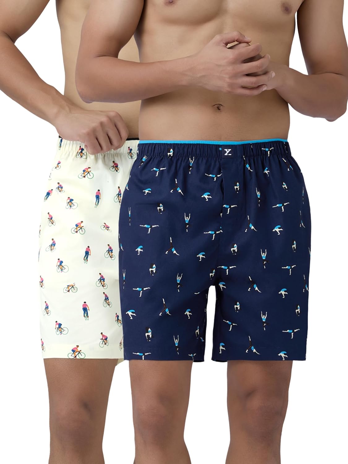XYXX Men’s Renew Super Combed Cotton Regular Fit Printed Boxer Shorts with No Marks Waistband & Dual Side Pocket (Pack of 2)