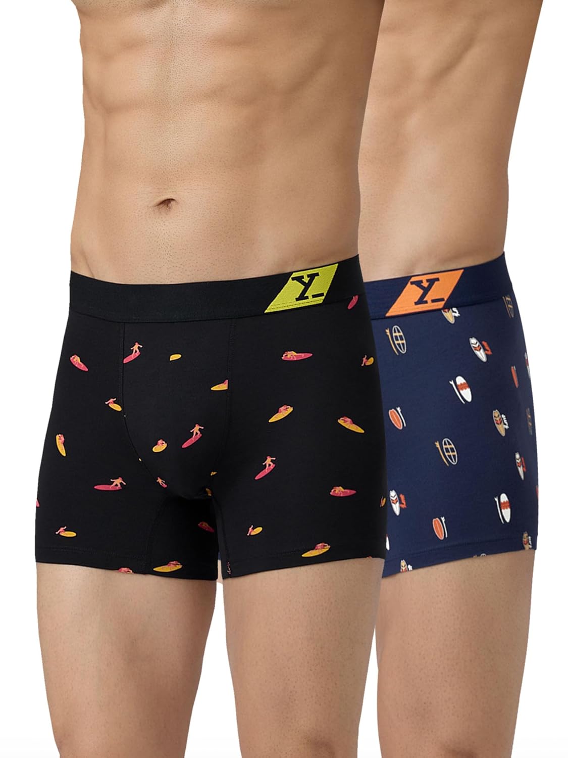 XYXX Men’s Splash 100% Super Combed Cotton Regular Fit Printed Antibacterial Trunks with No Marks Waistband (Pack of 2)