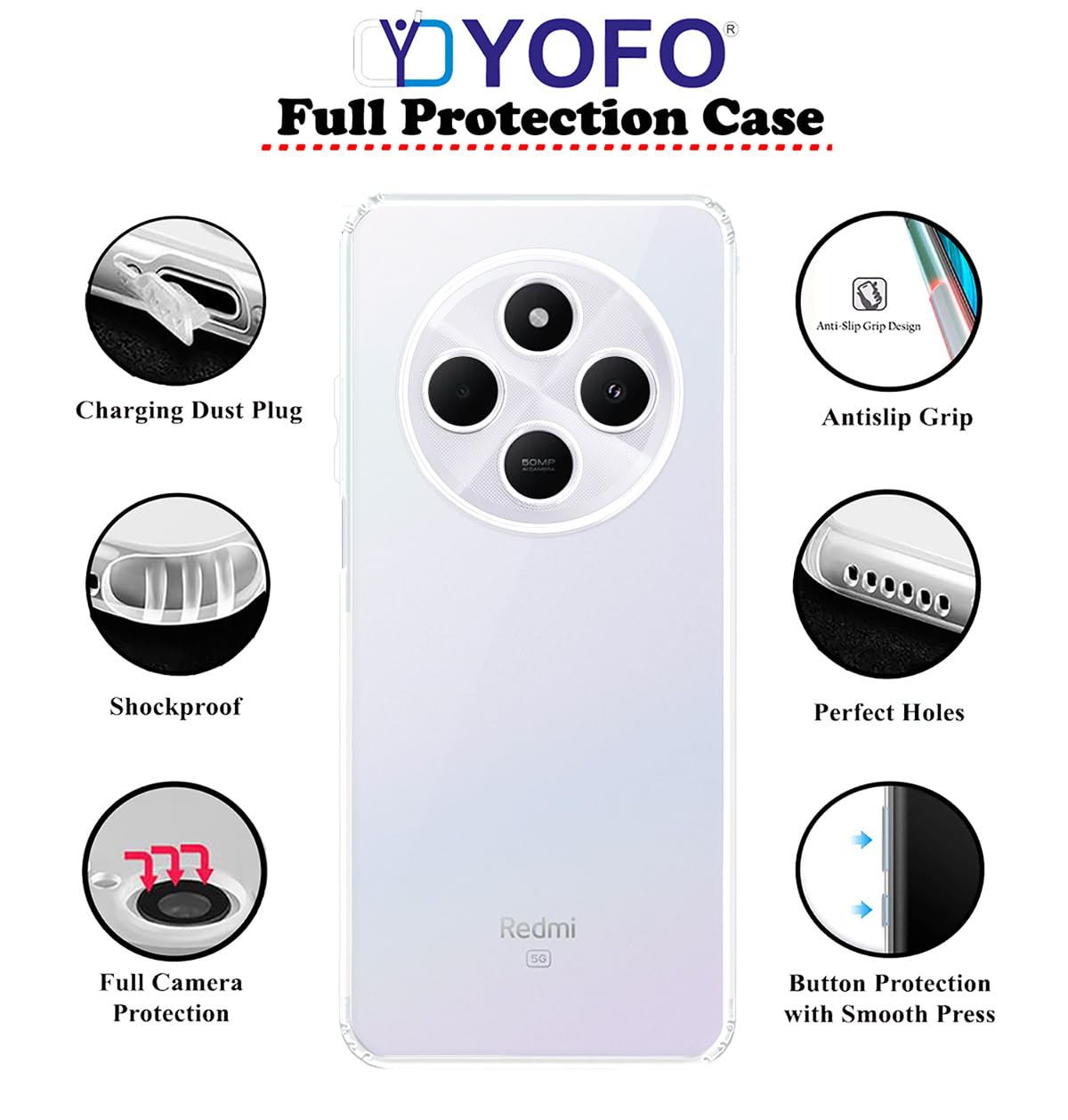 YOFO Silicon Back Cover Case for Mi Redmi A4 / Redmi 14c (5G) / Poco M7 (5G) (Transparent) Camera Protection with Dust Plug