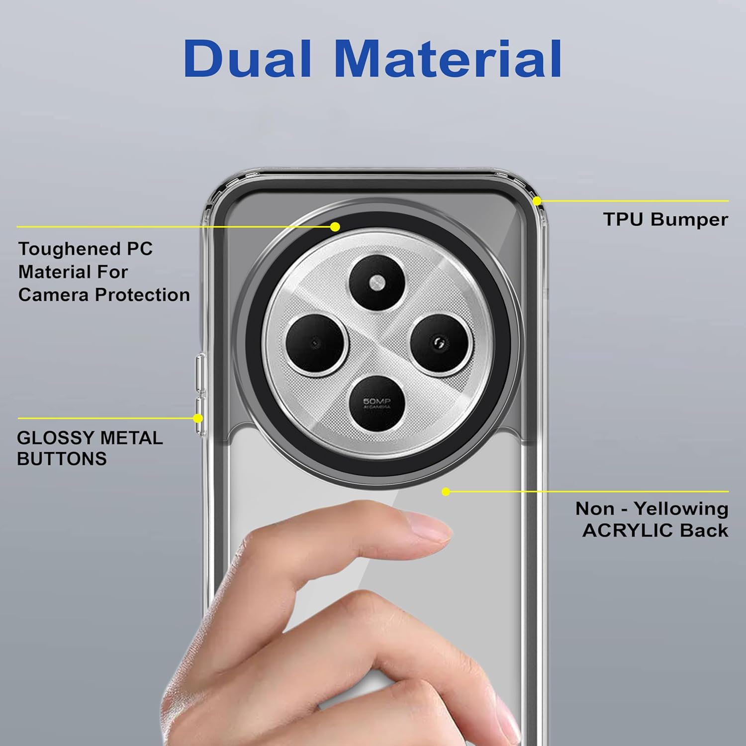 [Material] The Edge technology fusing made of Superior Quality TPU Material, Translucent back panel made from Imported Polycarbonate that does not get Yellow and gives a Premium Touch & feel.