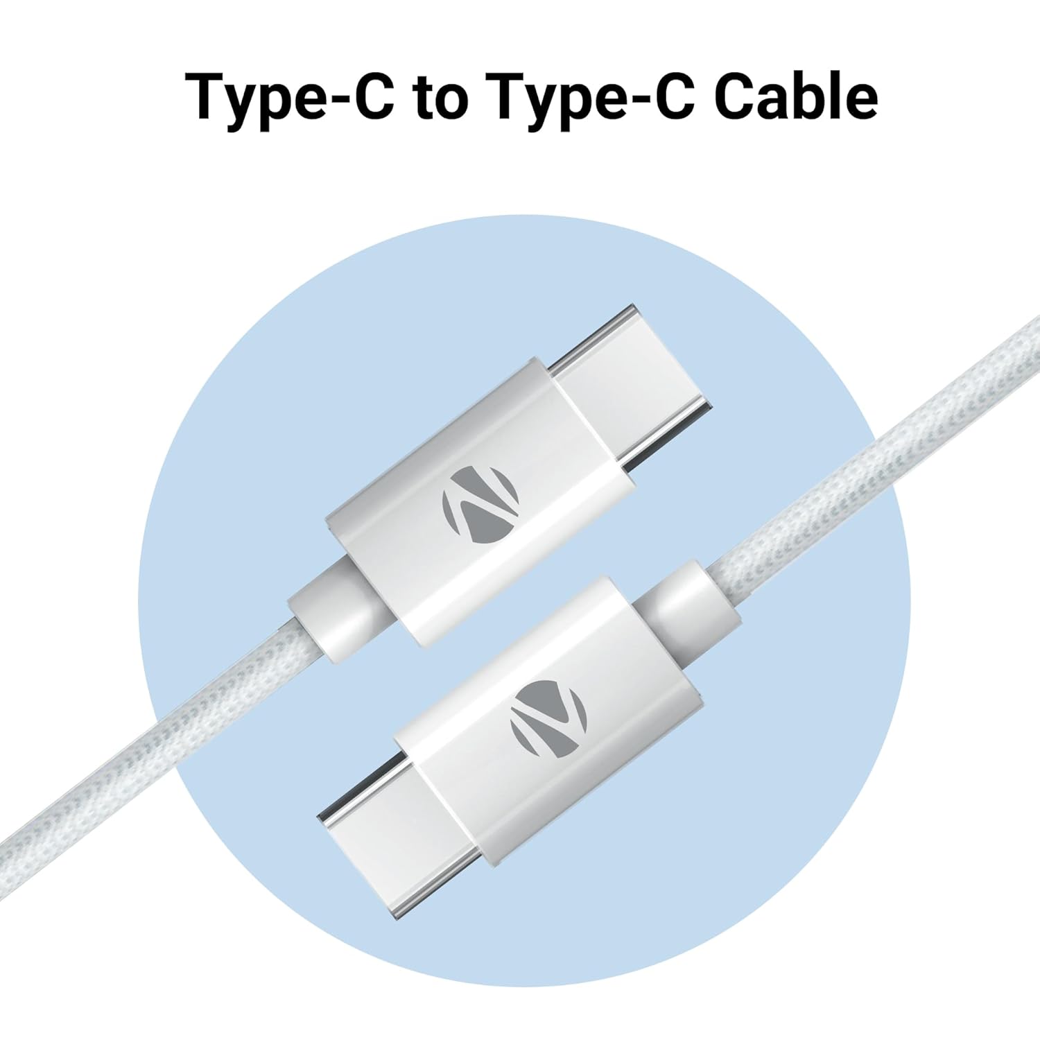 ZEBRONICS Type C to Type C Strong Braided Cable, 60W PD Fast Charging, for iPhone 16 Series, 15 Series, iPad, MacBook, Samsung, Other Android Devices, Data Sync, 1 Meter (ZEB-TT60+) White