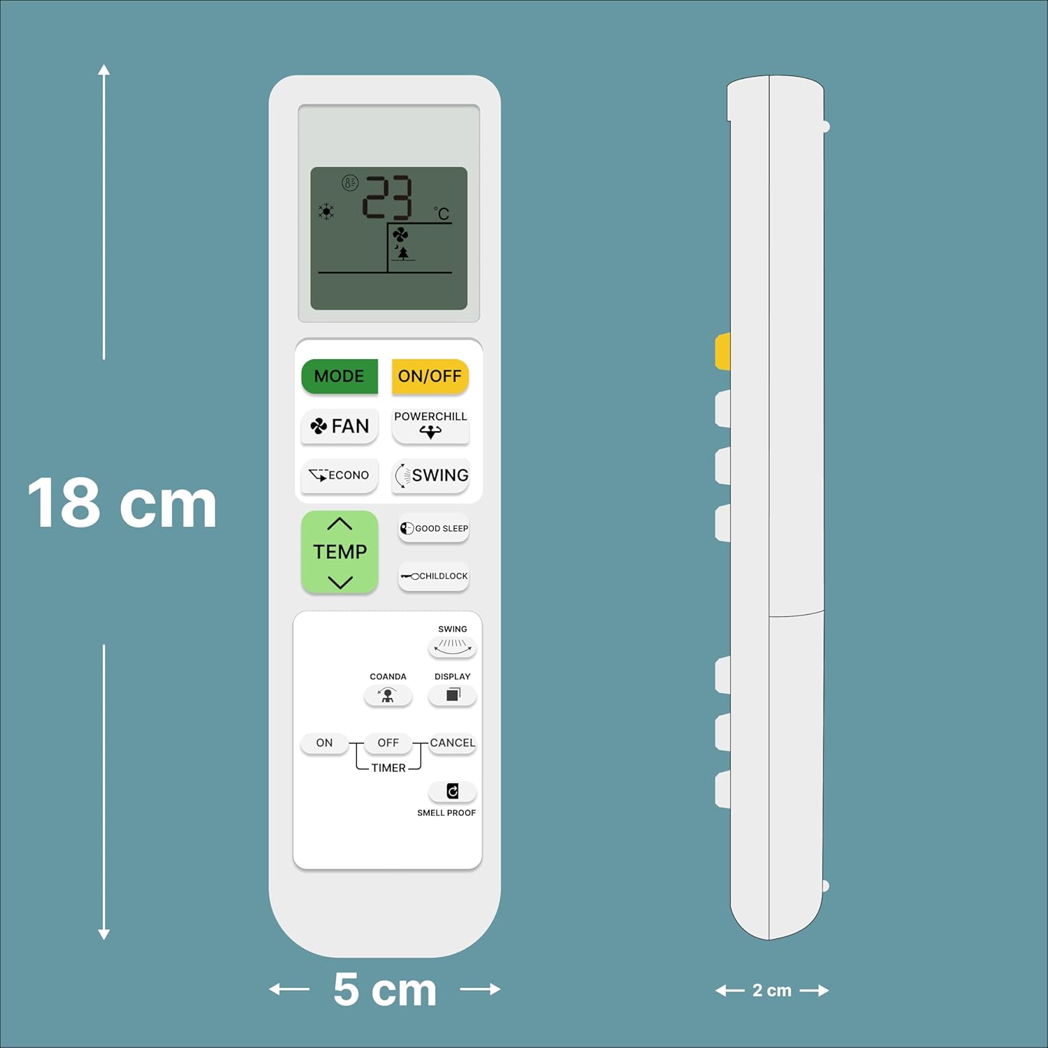 An Air Conditioner (AC) remote control is a compact, handheld device designed for the wireless operation of an air conditioning unit, typically using an infrared (IR) sensor. It features an ergonomic design for easy handling and a user-friendly interface for efficient operation. The remote generally includes several buttons that allow users to customize their cooling or heating experience. The power button turns the AC on or off, while the mode button lets users switch between cooling, heating, fan-only, humidification, and auto modes. Temperature control buttons allow for precise adjustments, such as low, medium, high, and auto, while the swing button adjusts the airflow direction, either fixed or oscillating, for even air distribution. The LCD or LED display screen provides real-time information such as temperature, mode, fan speed, timer settings, and, in some models, even battery levels. Additional high-end features may include a backlit display for better visibility in low-light conditions. Typically powered by AAA batteries, With its combination of intuitive controls, advanced features, and energy-saving options, an AC remote provides convenience and comfort for efficient climate control. Frequently Asked Questions: 1. Batteries Included? Not included. 2. Not Working Properly at first Use? Please do not insert batteries from old remote control. Please make sure you put on brand new batteries while first use. 3. Doesn’t Support? Please make sure your original remote looks back to back like our displayed remote.