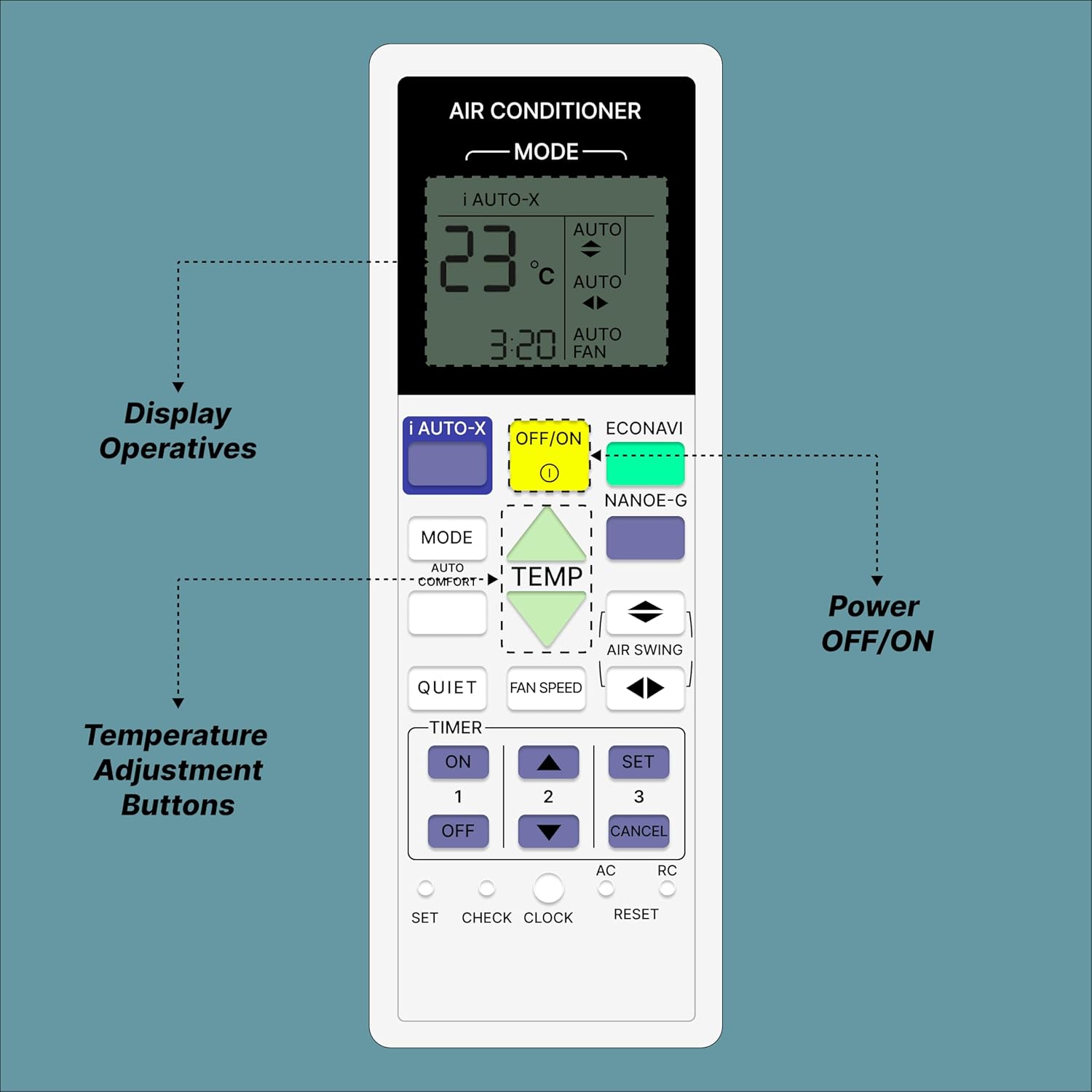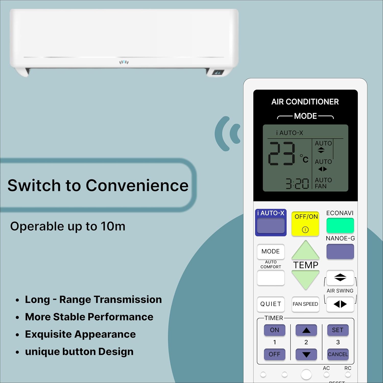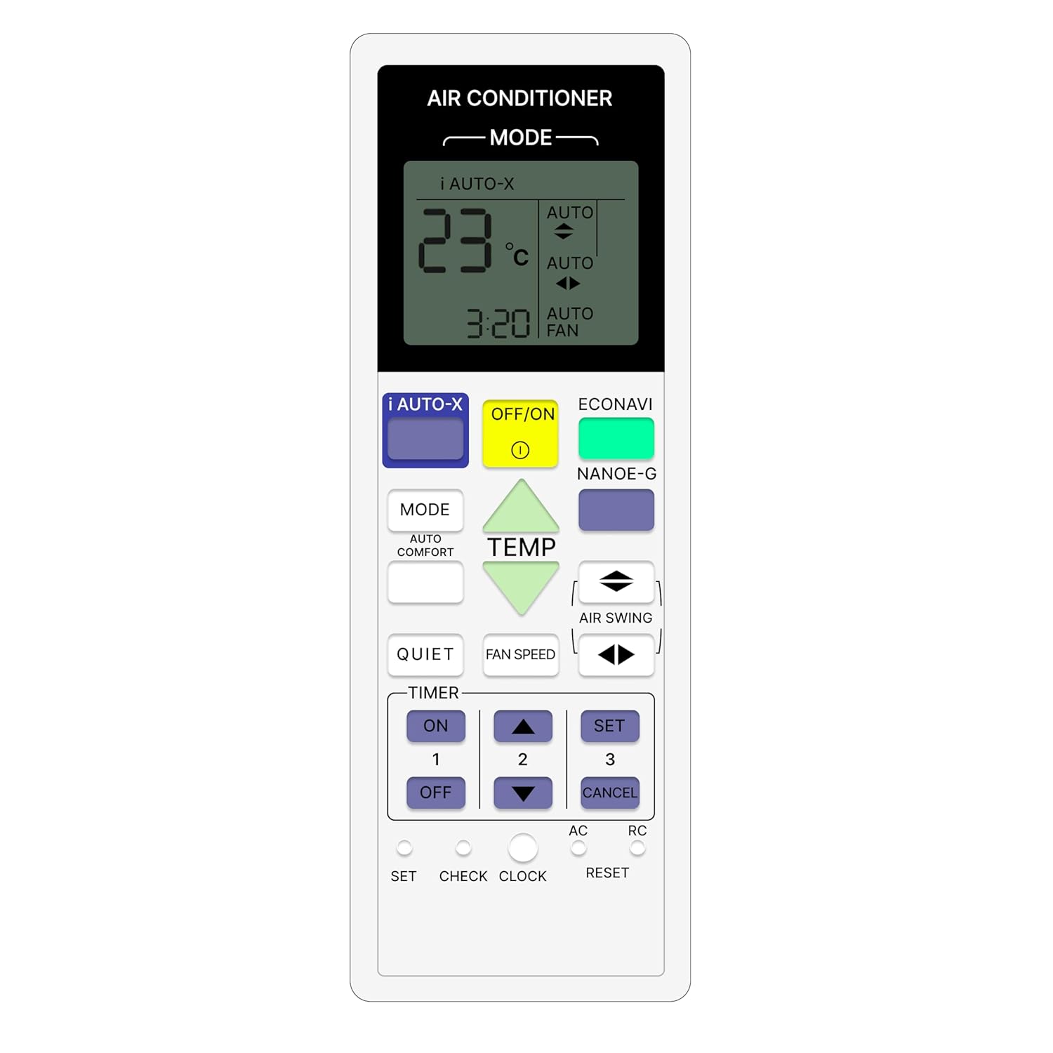 An Air Conditioner (AC) remote control is a compact, handheld device designed for the wireless operation of an air conditioning unit, typically using an infrared (IR) sensor. It features an ergonomic design for easy handling and a user-friendly interface for efficient operation. The remote generally includes several buttons that allow users to customize their cooling or heating experience. The power button turns the AC on or off, while the mode button lets users switch between cooling, heating, fan-only, humidification, and auto modes. Temperature control buttons allow for precise adjustments, such as low, medium, high, and auto, while the swing button adjusts the airflow direction, either fixed or oscillating, for even air distribution. The LCD or LED display screen provides real-time information such as temperature, mode, fan speed, timer settings, and, in some models, even battery levels. Typically powered by AAA batteries, With its combination of intuitive controls, advanced features, and energy-saving options, an AC remote provides convenience and comfort for efficient climate control. Frequently Asked Questions: 1. Batteries Included? Not included. 2. Not Working Properly at first Use? Please do not insert batteries from old remote control. Please make sure you put on brand new batteries while first use. 3. Doesn’t Support? Please make sure your original remote looks back to back like our displayed remote.