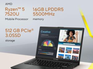 ASUS Vivobook Go 15 (2023), AMD Ryzen 5 7520U, 15.6″ (39.62 cm) FHD, Thin and Light Laptop (16GB/512GB SSD/Integrated Graphics/Windows 11/Office 2021/Black/1.8 Kg), E1504FA-NJ549WS