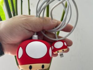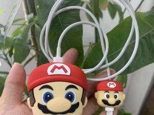 AUGEN Cartoon 3D Design Protective Case for 20W iPhone USB-C Power Adapter Charger, Cute Cartoon Lightning Data Cable Case for iPhone Charger (Super Mushroom, Pack of 1)