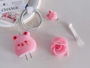 AUGEN Cartoon 3D Design Protective Case for 20W iPhone USB-C Power Adapter Charger, Cute Cartoon Lightning Data Cable Case for iPhone Charger (Teddy Pink, Pack of 1)