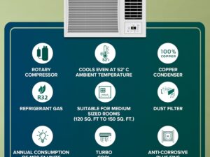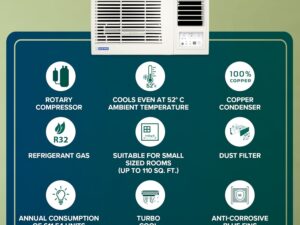 Blue Star 0.8 Ton 3 Star Fixed Speed Window AC (Copper, Turbo Cool, Fan Modes-Auto/High/Medium/Low, Hydrophilic Blue Fins, Dust Filters, Self-Diagnosis, WFD309L, White)