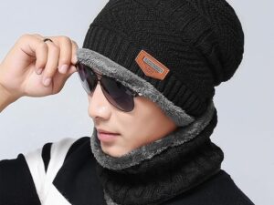 BYNOMO Winter Woolen Beanie Cap & Muffler for Men & Women| Beanie Cap| Winter Clothing Set| Woolen Topaa| Winter Cap| Head & Neck Warmer| 1 Set| BLACK GREY