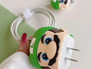 CASENED Case for Apple 20W iPhone USB-C Power Adapter Charger and USB Lightning Cable Protector | 3D Cartoon Design Soft Phone Charging Protective Cover (Mario-Green)