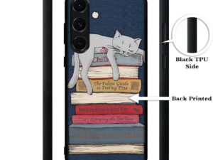 Cat Sleeping On The Books Design Premium 2D Printed Metal Back Case Cover for Samsung Galaxy S24 FE 5G