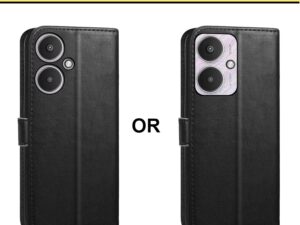 CEDO Realme Narzo N65 / Realme C65 (5G) Flip Cover | Leather Finish | Inside Pockets & Inbuilt Stand | Shockproof Wallet Style Magnetic Closure Back Case Flipcover (Black)