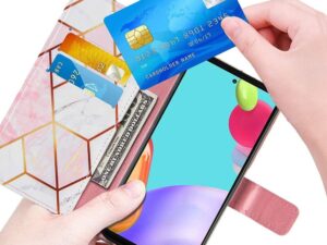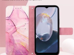 ClickCase for Samsung Galaxy M05 Marble Series Faux Leather Back Case Card Holder Wallet with Magnetic Closure Flip Cover for Samsung Galaxy M05 (Pink White)