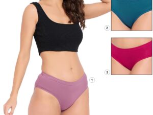 Clovia Women’s Cotton Spandex Pack of 3 Medium Waist Inner Elastic Hipster Panty – Multicolor