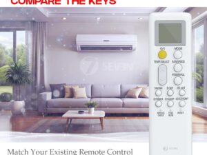 7SEVEN® Compatible with Samsung AC Remote Control Model 144E Suitable for 1 1.5 2 Ton Split and Window Air Conditioner – Match Each Key by Key Exactly with existing AC Remote Function