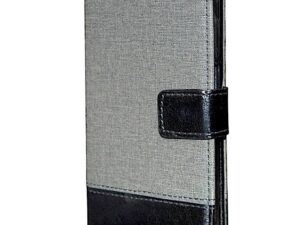 COVERBLACK Dual Colour Joint Denim Cloth & Vegan Leather Magnetic Case Cover with Card & Cash Wallet Flip Cover Compatible for Realme Narzo N61 – Grey & Black