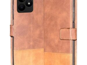 Coverage Dual Colour Joint Vegan Matte Finish Leather Inbuilt Stand & Pockets Wallet Case Flip Cover Compatible for Realme Narzo N61 – Coffee & Tan Brown