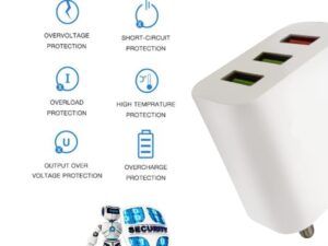 3 in 1 Charger for Realme Narzo N61 Charger Android Smartphone Wall Mobile Charger with 1.2m 3-in-1 Multi Functional Micro USB Android, iOS and Type-C USB Cable – (White, BR.G)